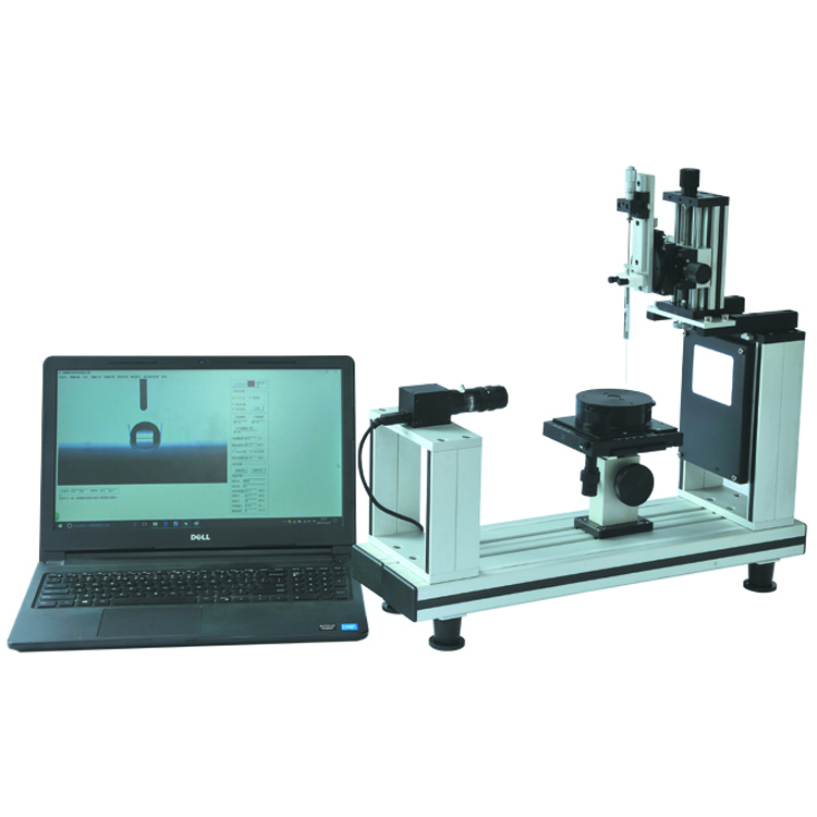水滴角測(cè)定儀主要基于測(cè)角儀的原理,通過測(cè)量液體在固體表面上的接觸角來計(jì)算表面張力。接觸角是指液體在固體表面上的潤(rùn)濕程度,它可以通過測(cè)角儀測(cè)量得到。測(cè)角儀通常由一個(gè)可以旋轉(zhuǎn)的平臺(tái)和一套光學(xué)系統(tǒng)組成,通過光學(xué)系統(tǒng)可以捕捉到液體在平臺(tái)上的接觸角。